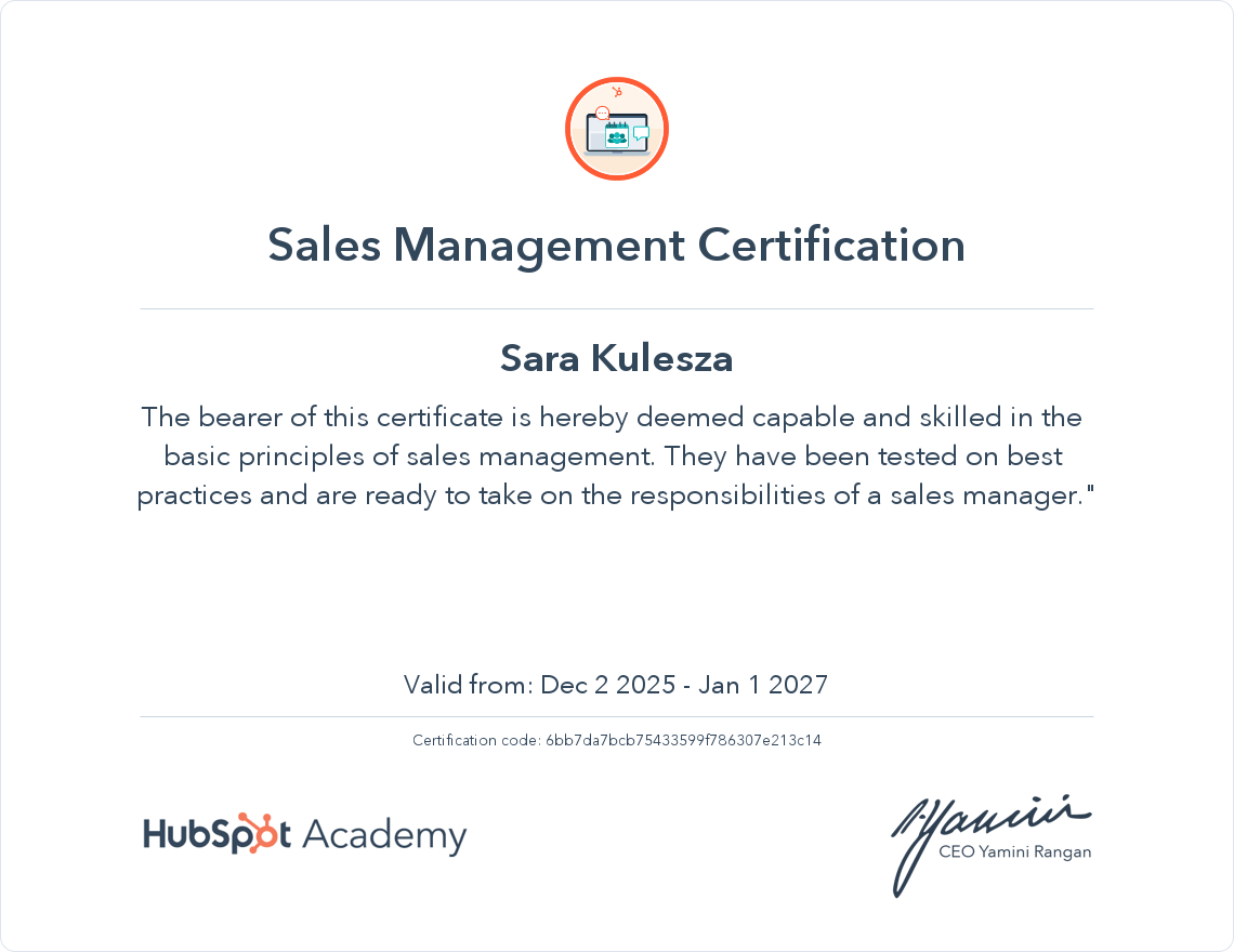 Sales Management Certification
