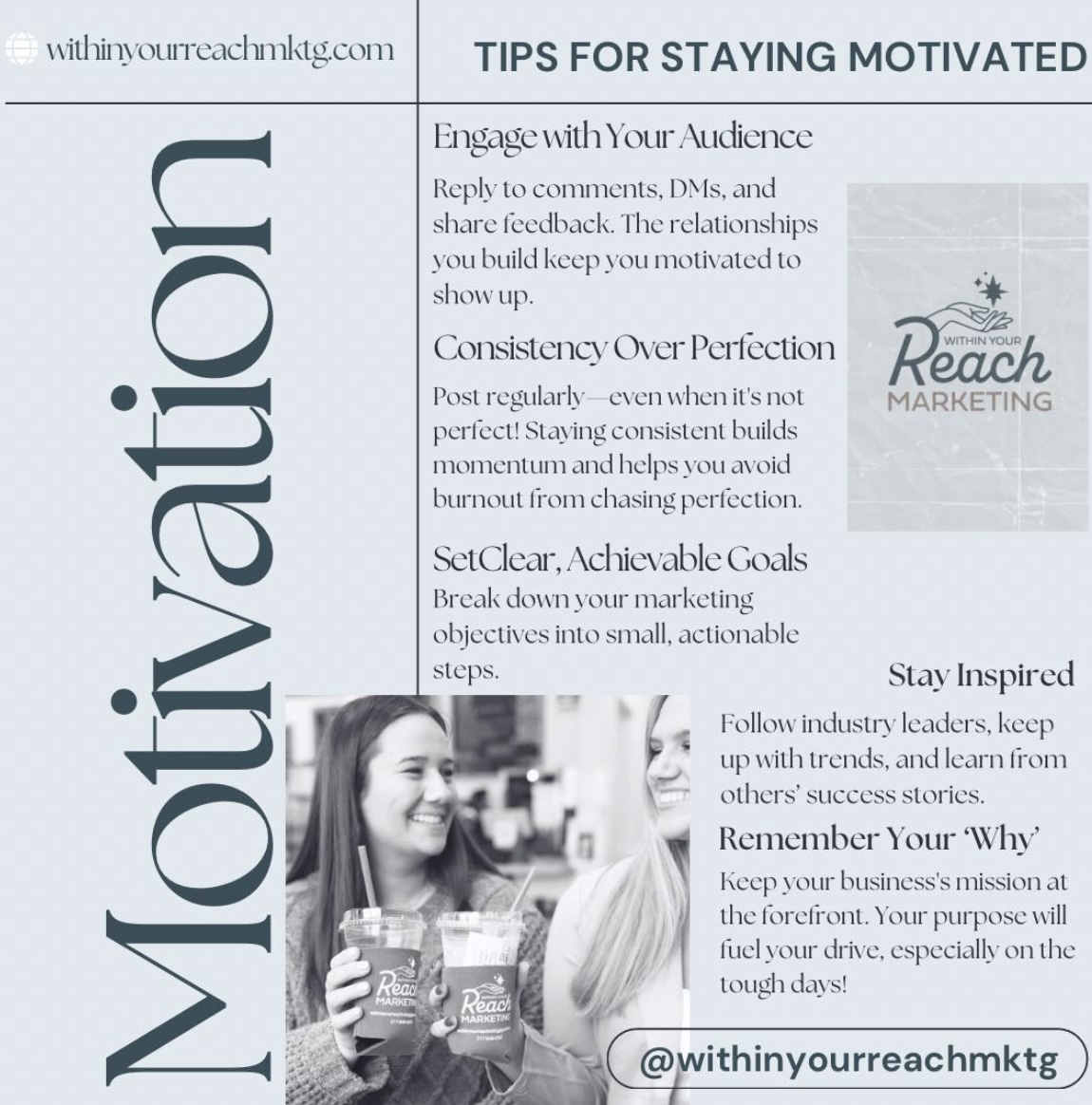 At Within Your Reach Marketing, I directly managed two client accounts on top of the WYR page, aligning strategies with each business’s goals while maintaining clear communication with both clients and agency leadership. I led social media performance reviews to optimize content, gaining over 100 new followers through tailored engagement strategies. I also contributed to website design and content edits, helping improve functionality, elevate user experience, and strengthen each client’s online presence.